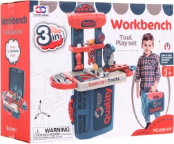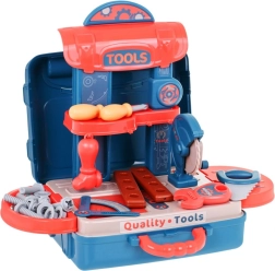 De gereedschapsset in een praktische koffer is ontworpen voor kinderen ouder dan 3 jaar. De koffer is voorzien van een comfortabele handgreep en dient ook als basis voor de werktafel. De werkbank kan rechtop op de koffer of uitgeklapt horizontaal worden geplaatst. Na het spelen kunnen alle gereedschappen in de koffer worden opgeborgen en overal mee naartoe worden genomen.