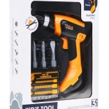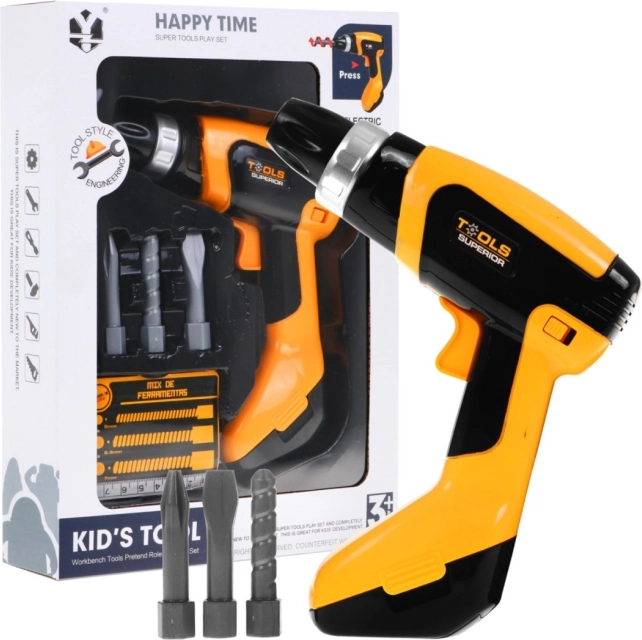 Deze elektrische boormachine voor kinderen ziet eruit en werkt als een echte. Kinderen kunnen de boor gebruiken om schroeven vast en los te draaien of om te boren. De verwisselbare opzetstukken maken het spel nog leuker.