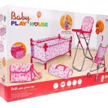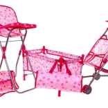 Accessoireset voor poppen voor kinderen 3+ Babyverzorging met kinderwagen, kinderstoel, bedje en 2 tassen