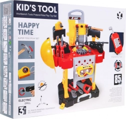 Complete kinderset voor kleine klussers met 3-in-1: werkbank, gereedschapskoffer en bouwmeesterkostuum. In de set vind je 85 stuks realistisch kunststof gereedschap en accessoires, waaronder een accuboormachine/schroevendraaier (2× AA, niet inbegrepen), een helm, beschermbril en maskers. Perfect voor het ontwikkelen van fijne motoriek, creatief spel en veilig kennismaken met gereedschap voor kinderen vanaf 3 jaar.