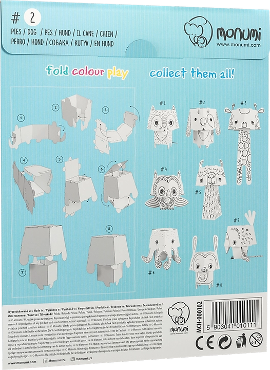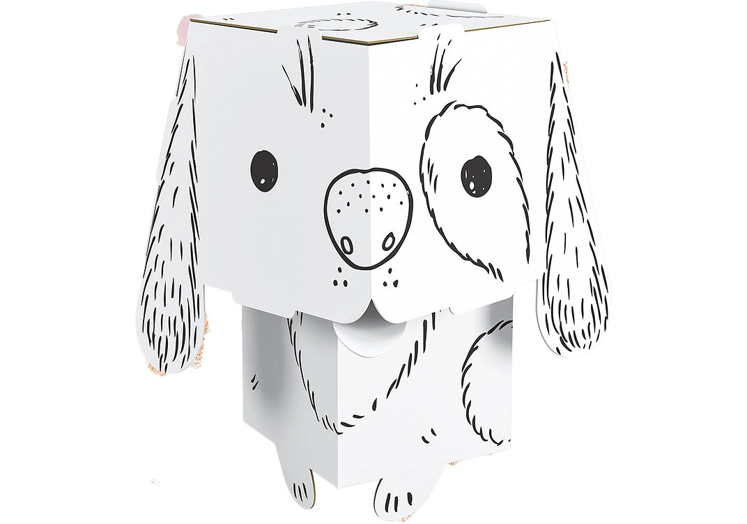 Een leuke en creatieve 3D kleurpuzzel in de vorm van een hond van wit karton biedt kinderen uren speelplezier. De onderdelen zijn nauwkeurig uitgesneden en eenvoudig in elkaar te zetten zonder lijm of schaar. Het stabiele en lichte model met professionele zwart-witgrafiek is ideaal voor kleurpotloden, viltstiften, markers en verf; het karton absorbeert vocht goed, kromt niet en vlekt niet door.