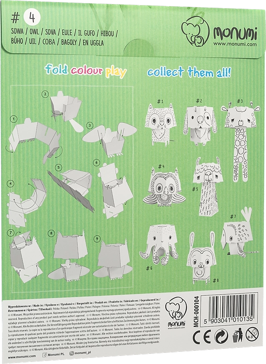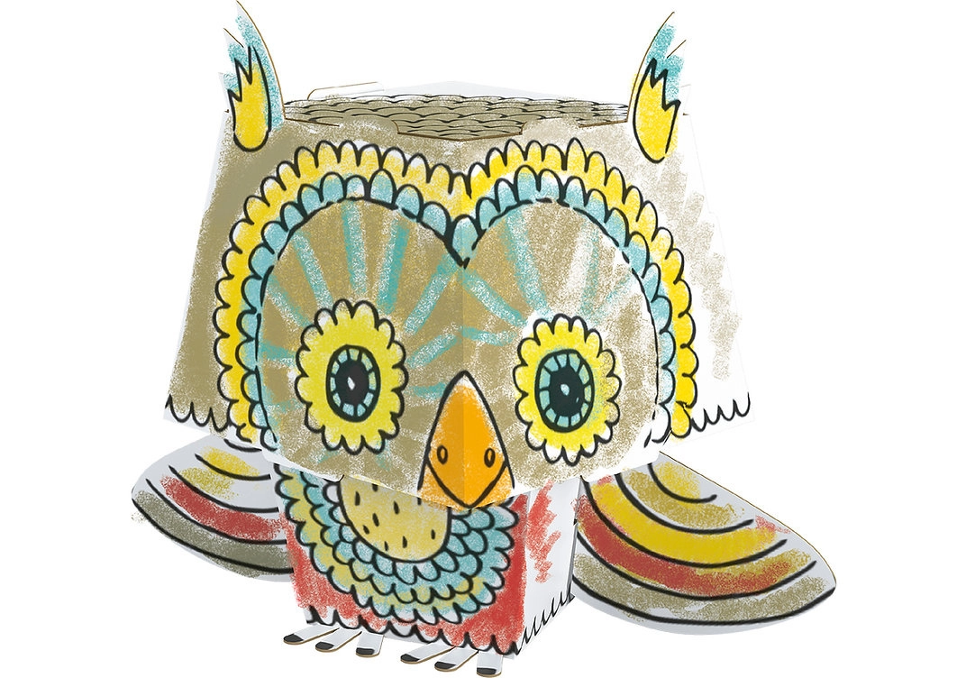 Een leuke en creatieve 3D-kleurpuzzel in de vorm van een uil van wit karton, perfect voor kleine makers. De onderdelen zijn precies uitgesneden en eenvoudig te monteren zonder lijm of schaar. Het s... Meer tonen