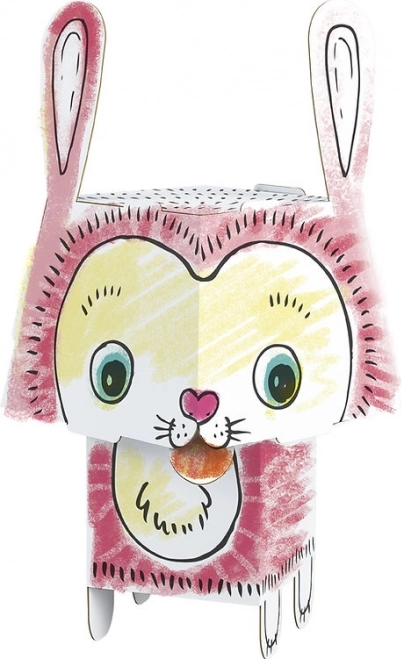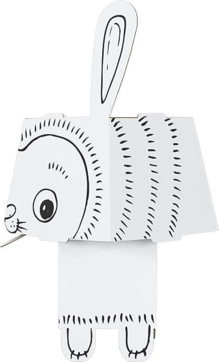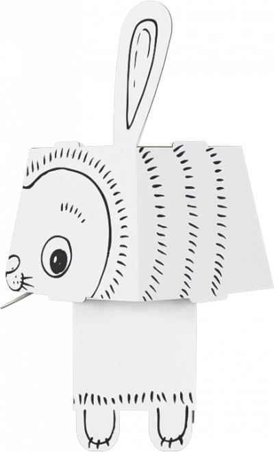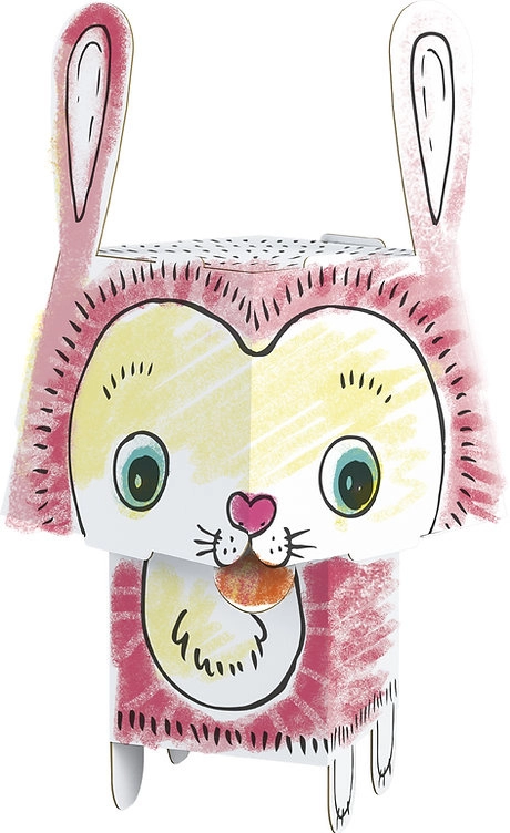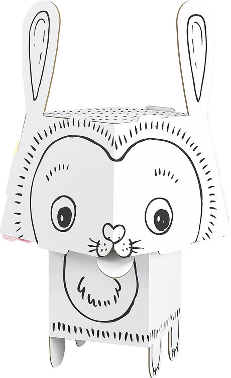 Een leuke papieren 3D puzzel in de vorm van een konijn die kinderen creatieve plezier biedt bij het kleuren én het bouwen. Het model van stevig wit karton heeft nauwkeurig uitgesneden onderdelen die eenvoudig in elkaar passen zonder lijm of schaar. Licht, stabiel en duurzaam na het monteren, geschikt voor kleurpotloden, fineliners, markers en verf.