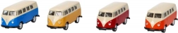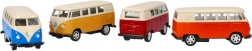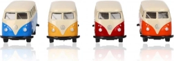 De Volkswagen T1 MicroBus is een gedetailleerd model dat elke liefhebber van retrodesign zal verrassen. Dit metalen model met rubberen wieltjes is ideaal voor zowel verzameldoeleinden als kinderplezier. Dankzij het vliegwielmechanisme hoeft u het voertuig alleen maar naar achteren te trekken en het rijdt vanzelf vooruit.