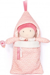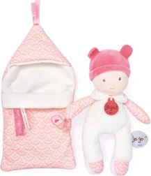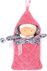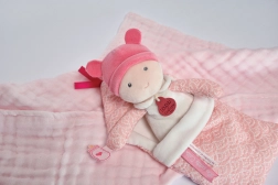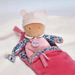 Ontdek het plezier van spelen met deze schattige doudou-pop, zorgvuldig gewikkeld in een roze bloemendeken. Ideaal voor het kalmeren van kinderen en het stimuleren van hun verbeelding.