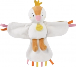 Dit fluweelzachte vogeltje in tinten geel en oranje charmeert met zijn zachtheid en rustgevende klanken. De kleurrijke lintjes aan vleugels, staart en kop nodigen uit om vast te grijpen, op te bijten en de fijne motoriek te oefenen. De stijlvolle doos met bloemmotief maakt er een prachtig cadeau van voor kersverse ouders.