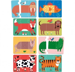 De doos bevat 24 stukken met afmetingen van 8x18 cm, een optimale grootte voor kleine kinderhanden. De puzzel is gemaakt van kwaliteitskarton, wat veiligheid en duurzaamheid tijdens het spelen garandeert. Het speelse ontwerp en de mogelijkheid om stukjes onderling te verwisselen bieden eindeloze speelmogelijkheden.