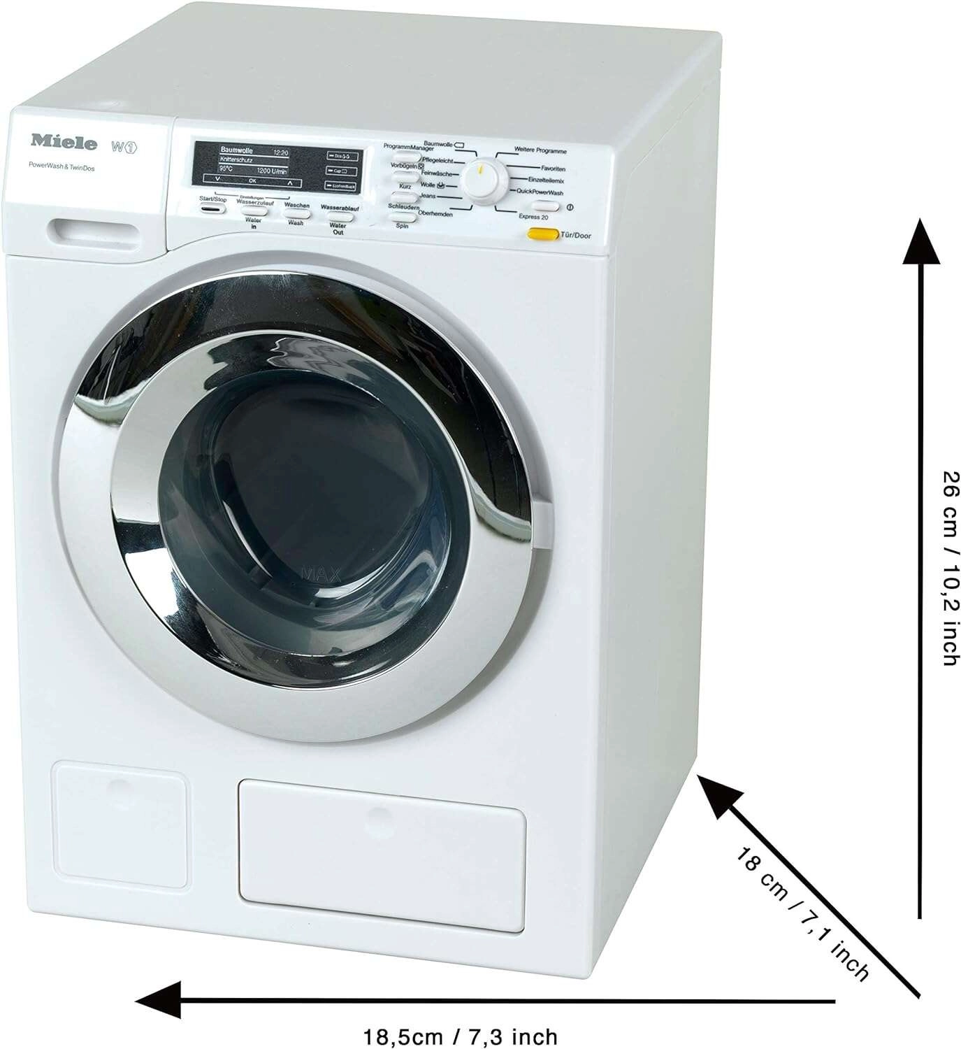 Realistische kinderwasmachine MIELE van het merk KLEIN biedt kinderen authentiek speelplezier bij het nadoen van volwassenen. Beschikt over een draaide trommel, 4 wasprogramma’s, LED-indicatie en de mogelijkheid om met of zonder water te wassen. Dankzij geluidseffecten en een werkende lade voor water is het spel nog geloofwaardiger en veilig voor kinderen vanaf 3 jaar.