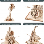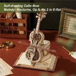 Een elegant cellomodel op een sokkel van drie boeken met een romantische retro-uitstraling en klassieke Europese patronen. Nauwkeurig uitgesneden onderdelen van hout en metaal passen perfect in elkaar en na het opwinden klinkt de beroemde melodie Nocturne, Op. 9 nr. 2 (Es-groot), terwijl de strijkstok vloeiend heen en weer beweegt. Het resultaat is een betoverende combinatie van muziek en mechaniek die in ieder interieur opvalt.