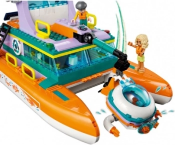 De set bevat de personages Nova en Aliya en andere vrienden, veel accessoires (net, reddingsvesten, microscoop, watermonsters, koffiezetapparaat, zonnebrandcrème e.d.) en duidelijke afmetingen van het model voor eenvoudig uitstallen. Met de LEGO Builder-app kunnen kinderen modellen inzoomen, in 3D draaien en de bouwvoortgang volgen.