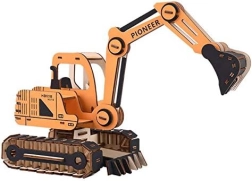 De houten 3D-puzzel graafmachine in oranje uitvoering zal alle kleine bouwers plezier doen. De onderdelen van 3 mm hoogwaardig triplex druk je eenvoudig uit en zet je stap voor stap volgens de meegeleverde handleiding in elkaar tot een indrukwekkend model. Er is geen lijm nodig, dus je kunt het model op elk moment uit elkaar halen en opnieuw in elkaar zetten.