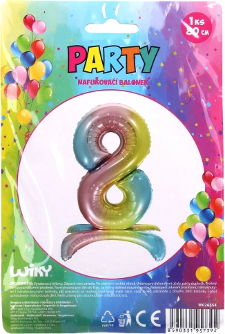 Geef je feest een kleurrijk accent. De folieballon cijfer 8 in regenbooguitvoering valt op door de opvallende kleurovergangen en vormt na het opblazen een dominant element van de decoratie. Ideaal voor achtste verjaardagen, jubilea of combinaties van meerdere cijfers.