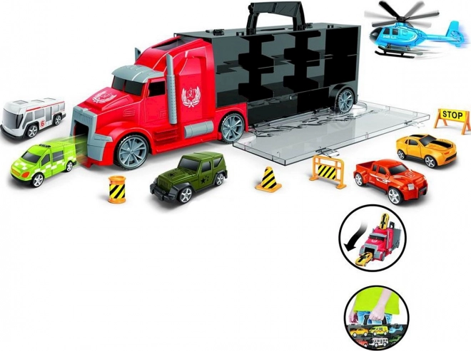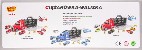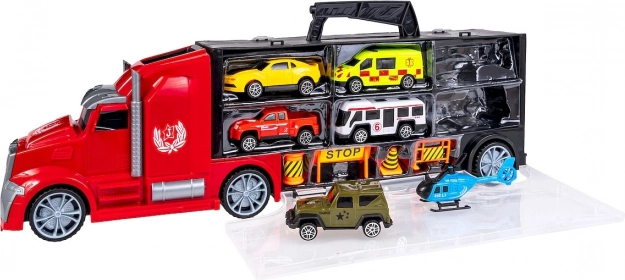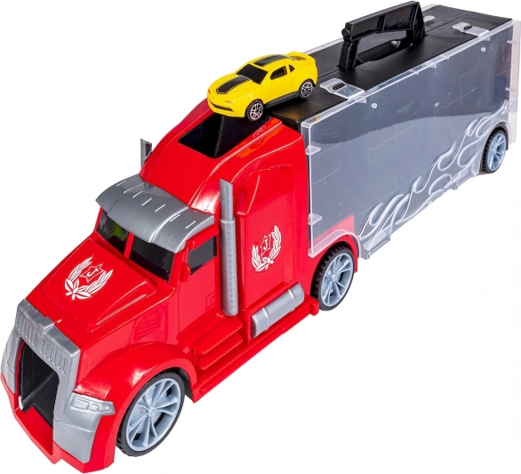 Set autootjes in een praktische koffer in de vorm van een vrachtwagen.