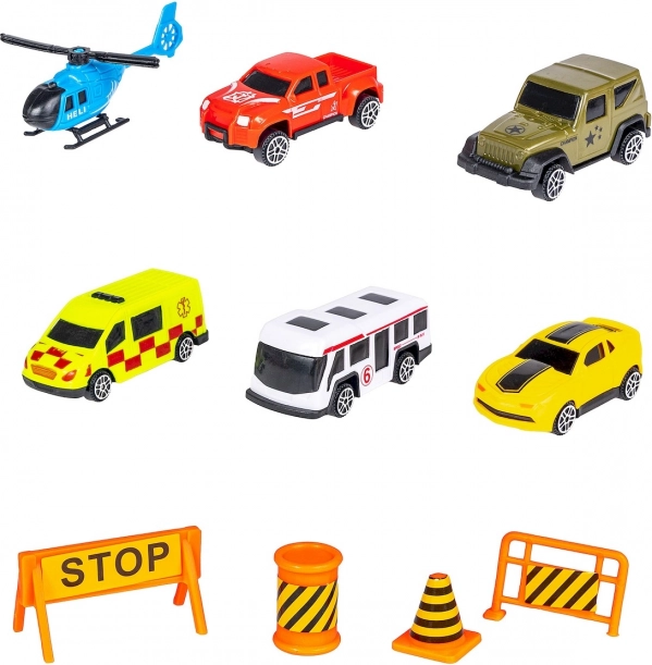 Bevat 5 autootjes en een helikopter.
