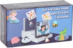 Snel observatiekaartspel voor kinderen en volwassenen, waarin je steeds één gemeenschappelijke afbeelding tussen de kaarten zoekt. De set bevat 54 stevige kaarten met opvallende illustraties en een tafelbel waarmee de speler een juiste match aangeeft. Een uitstekende keuze voor gezinsavonden, het ontwikkelen van observatievermogen, concentratie en snelle reacties.