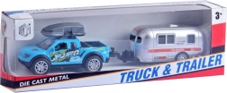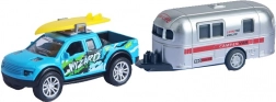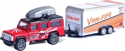 Beschikbaar in 4 aantrekkelijke designs – van sportieve pick-up tot SUV met dakkoffer. Elk model heeft vrij draaiende wielen, realistische prints en een functionele trekhaak om de aanhanger aan te koppelen.