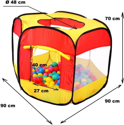 Afmetingen van de opgezette tent: 90 x 70 x 90 cm.