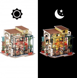 Ontdek de charme van een gedetailleerde miniatuur-bloemenwinkel van ROLIFE Robotime. Deze creatieve doe-het-zelf bouwset biedt rijke details, een gezellige sfeer met LED-verlichting en ontspannend knutselen voor 20+ uur. Ideaal als designdecoratie en als origineel cadeau voor liefhebbers van miniaturen en handwerk.