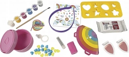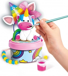 Met creativiteit wordt de wereld meteen kleurrijker! Met deze creatieve set kun je een schattige haarband, kralenarmband, sieradendoosje of een doosje voor kleinigheden maken met een eenhoornfiguurtje. De set bevat ook een gekleurde sleutelhanger met pompon. Stimuleert de ontwikkeling van creativiteit, verbeeldingskracht en fijne motoriek.