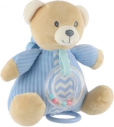 Deze superzachte teddybeer in blauw kalmeert en vermaakt – na het opwinden speelt hij een aangename melodie van ca. 1 minuut en 20 seconden, terwijl de transparante rammelaar met gekleurde bolletjes het gehoor en de coördinatie ondersteunt. Dankzij het compacte formaat van 18 × 18 cm ligt hij perfect in zelfs de kleinste handjes.