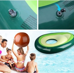 Geniet van de zomer met een speels opblaasbaar luchtbed in de vorm van een avocado met een verwijderbare pit – bal. Met een lengte van 150 cm biedt het comfort, ook voor langere gebruikers. De opening in het midden geeft de functie van een zwemband en het stijlvolle design valt op bij het zwembad en op het strand. Gemaakt van duurzaam PVC, met klassieke ventielen en eenvoudig opblazen.
