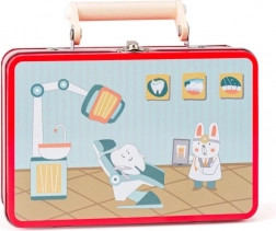 Deze stijlvolle tandarts-doktersset voor kinderen biedt alles wat nodig is voor de eerste spelletjes in de tandartspraktijk. De houten accessoires liggen prettig in de hand, zijn veilig en robuust, en de metalen doos houdt alles overzichtelijk bij elkaar, thuis en onderweg. Ideaal voor de ontwikkeling van sociale vaardigheden en om angst voor de dokter te verminderen.