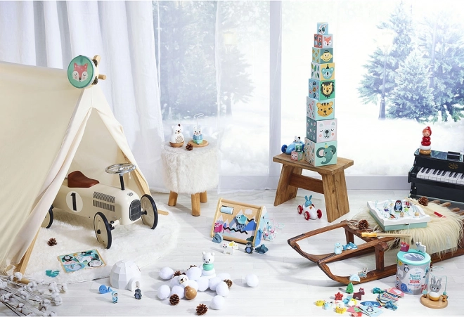Dankzij de illustraties van Michelle Carlslund, die geïnspireerd is door zachte kleuren en de natuur, is deze doolhof niet alleen een speelgoed, maar ook een kunstwerk. Dompel je onder in een wereld vol schattige beren en vriendelijke vogels.