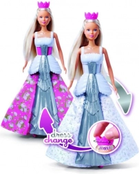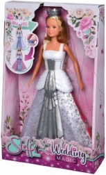 De STEFFI LOVE Magische Bruiloft-pop biedt een betoverende ervaring dankzij het slimme 2-in-1 mechanisme voor het transformeren van de jurk. Met één draai aan de kroon verandert de romantische roze bloemenjurk in een prachtige witte trouwjurk. De lange blonde haren kunnen worden gekamd en gestyled, zodat elk spelmoment anders is.