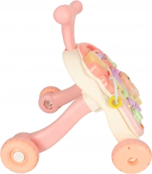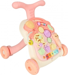 Dit multifunctionele 3-in-1 speelgoed past zich aan de ontwikkeling van het kind aan: eerst dient het als een hangend interactief paneel voor rustig spel, daarna als een activiteitentafel voor nieuwsgierig staan en uiteindelijk als een looptrainer voor veilige eerste stapjes. Pastelroze kleuren en kleurrijke elementen nodigen uit tot ontdekken, knoppen spelen melodieën en geluiden af en gevarieerde activiteiten ontwikkelen de vaardigheden van het kind.