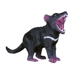 Deze gedetailleerde figuur toont de Tasmaanse duivel in een typische houding met open bek en een opvallende vachttextuur. Dankzij de handbeschildering komen authentieke kleuren en fijne details naar voren, wat educatief spel en natuurbeleving stimuleert.