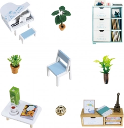 De bouwset van het miniatuurhuisje Theater van Geluk laat je onderdompelen in een fascinerende wereld van details en miniaturen. Elk onderdeel wordt geleverd als een bouwpakket dat je kunt monteren aan de hand van een gedetailleerde handleiding.