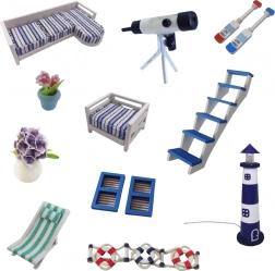 Ontdek een brede selectie kleine objecten, zoals ligstoelen, kleine trappen en minimeubels, die perfect de strandsfeer oproepen. Deze items geven je model een realistische uitstraling en versterken de decoratieve waarde.