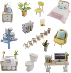 Het miniatuurhuisje Huis van rustige momenten zal alle liefhebbers van knutselen en details bekoren. In de doos vind je houten, papieren en textiele onderdelen waarmee je stap voor stap realistische kamers met meubels, accessoires en functionele LED-verlichting bouwt. Het resultaat wordt een prachtige decoratie voor een plank, werkhoekje of kinderkamer.