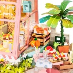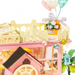 Deze gedetailleerde DIY-set laat je een eigen miniwinkel bouwen in pasteltinten met subtiele accessoires, ballonnen en bloemen. De geïntegreerde LED-verlichting zorgt ’s avonds voor een aangename sfeer en verandert het model in een betoverende decoratie. Dankzij de complete accessoires in de doos kun je meteen aan de slag.