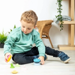 Het stapelen en sorteren van onderdelen ontwikkelt de grip, oog-handcoördinatie en concentratie. Ideale activiteit voor kinderen vanaf 1 jaar.