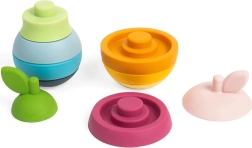 Siliconen is duurzaam, niet-toxisch en prettig aan te raken – het is gemakkelijk hygiënisch te houden, neemt geen geuren of vlekken op en het speelgoed kan in de vaatwasser. Het fruitthema nodigt uit tot spel, prikkelt de fantasie en ondersteunt de waarneming van kleuren en formaten.