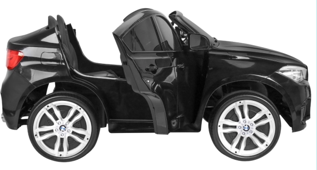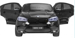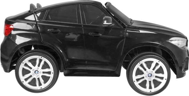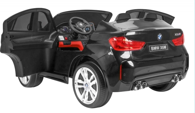 Luxe elektrische kinderauto BMW X6M XXL voor twee kinderen met een realistische rijervaring dankzij krachtige motoren, grote wielen en rijke uitrusting. Voorzien van 2,4 GHz afstandsbediening voor ouders, soepele start, LED-verlichting voor en achter en een audiopaneel met MP3/USB/SD/AUX. Comfort verzekerd door een zwart zitje van eco-leer met dubbele veiligheidsgordels en openende deuren met vergrendeling.
