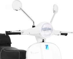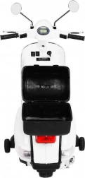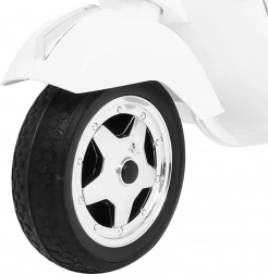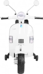 Elektrische kinderscooter Vespa wit met zijwieltjes, audio en eco-leer