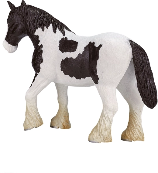 Dit gedetailleerde figuur toont het majestueuze ras Clydesdale in karakteristieke zwart-witte kleuring. Dankzij het kwalitatieve materiaal en de zorgvuldige modellering blinkt het uit met een realistische manen, staart en “bevedering” aan de benen, wat het model extra authenticiteit geeft.