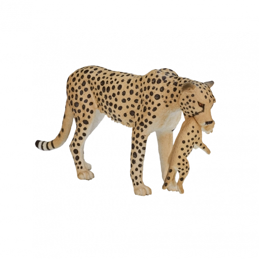 Ontdek de wereld van de wilde natuur met de realistische cheeta met welp van Mojo. Het model valt op door de gedetailleerde vacht en kleuring, waardoor kinderen eenvoudig de karakteristieke kenmerken van deze snelle jager herkennen. Het stevige en veilige materiaal is ideaal voor dagelijks spelen en leren.