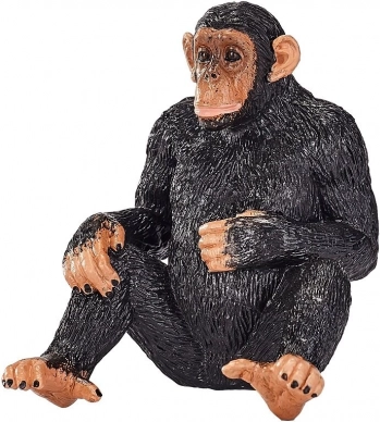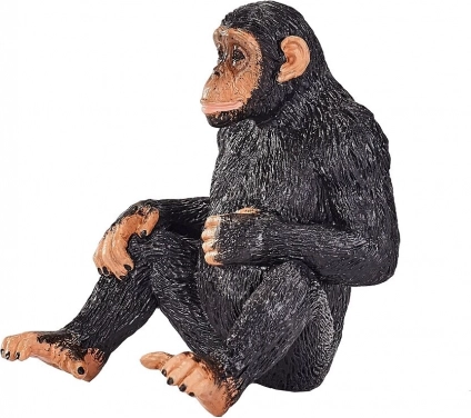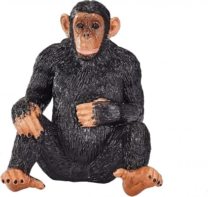 Deze zittende chimpansee-figuur geeft het echte leven in de Afrikaanse natuur weer, met focus op mimiek en details.