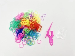 Creatieve set voor het maken van Loom Bands armbanden. Maak je eigen sieraden en versieringen van elastiekjes, versier jezelf en verras ook je vrienden. De set in een doosje in de vorm van een vlinder bevat 500 gekleurde elastiekjes, een kleine handweefloom en een haaknaald. Alles wat je nodig hebt om zelf armbandjes van elastiekjes te maken. 500× elastiekje, haaknaald, verbindingsclipjes