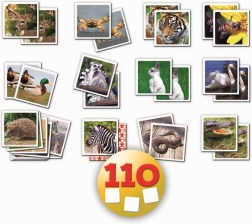 Familieplezier met memory, dat 110 kaartjes bevat met foto's van dieren uit de natuur. Ideaal voor het trainen van het geheugen van zowel kinderen als volwassenen.