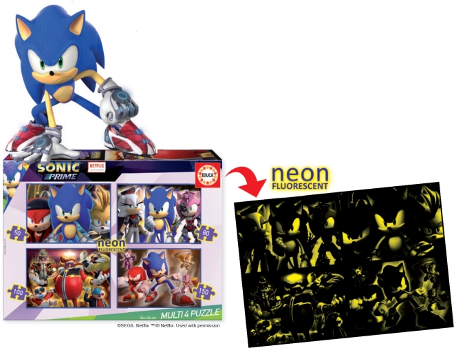 EDUCA Gloeiende puzzel Sonic Prime 4-in-1 (50, 80, 100, 150 stukjes)