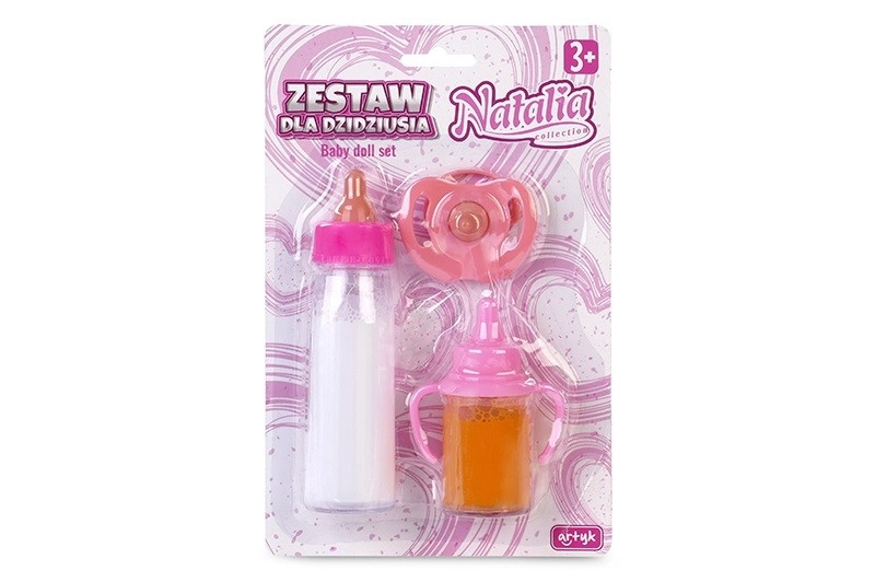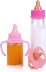 Ontdek de magie van vadertje- en moedertje-spelen met de set Magische fles Natalia. Bij het kantelen van het flesje met “melk” of de beker lijkt de vloeistof te verdwijnen, waardoor het lijkt alsof je pop echt drinkt. Ideaal voor het stimuleren van de fantasie, het oefenen van zorgtaken en de fijne motoriek.