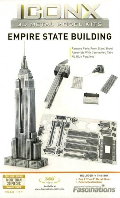 METAL EARTH 3D puzzel Empire State Building is ideaal voor diegenen die houden van het aanzicht van een complex model vol met details. Deze modelset van de premium ICONX-serie onderscheidt zich door zijn fijne precisie en hoog niveau van authenticiteit. Het is gemaakt van metalen platen en vereist vaardige handen en geduld.