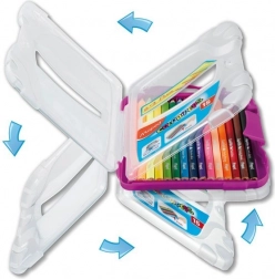 De slimme kunststof box met hefboommechanisme maakt organiseren en snel kleur kiezen eenvoudig. De set is ideaal voor school, clubs en thuis – alles wat je nodig hebt altijd binnen handbereik.