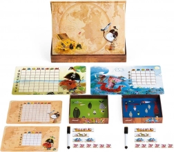 Ga op een piratenexpeditie en probeer te ontdekken waar je tegenstander zijn schepen heeft verstopt. Het magnetische piratenschepenspel van JANOD brengt het klassieke principe van zeeslag in een modern en duurzaam jasje. Dankzij de magnetische elementen blijft alles op zijn plaats, ideaal voor thuis én onderweg.