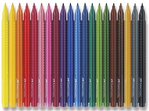 Ergonomische set stiften Faber-Castell Grip met 20 stuks, met heldere en opvallende kleuren, waterbasis-inkt die uit de meeste textiel uitwasbaar is en een comfortabel driehoekig lichaam met GRIP-zone. De duurzame punt kan hoge druk aan en de kunststof box maakt dragen en opbergen eenvoudig.