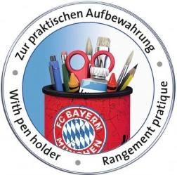 Het populaire merk RAVENSBURGER brengt een design 3D-houder met het clubmotief van FC Bayern München. Speciaal gevormde en genummerde stukjes van stevig kunststof passen naadloos in elkaar en vormen een stabiele organizer die elke dag plezier geeft. Je kunt bouwen aan de hand van het motief of volgens de nummering op de achterkant voor een eenvoudigere opbouw.